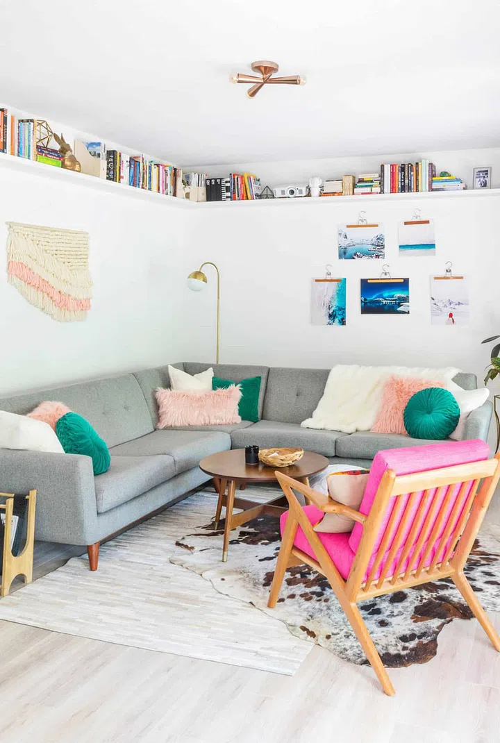 Imagine your eye level as a radar. Keep the area near this ‘radar’ free and open to create a breathable room and use the areas below and above it for perimeter storage, which is a storage that runs the length of the wall.