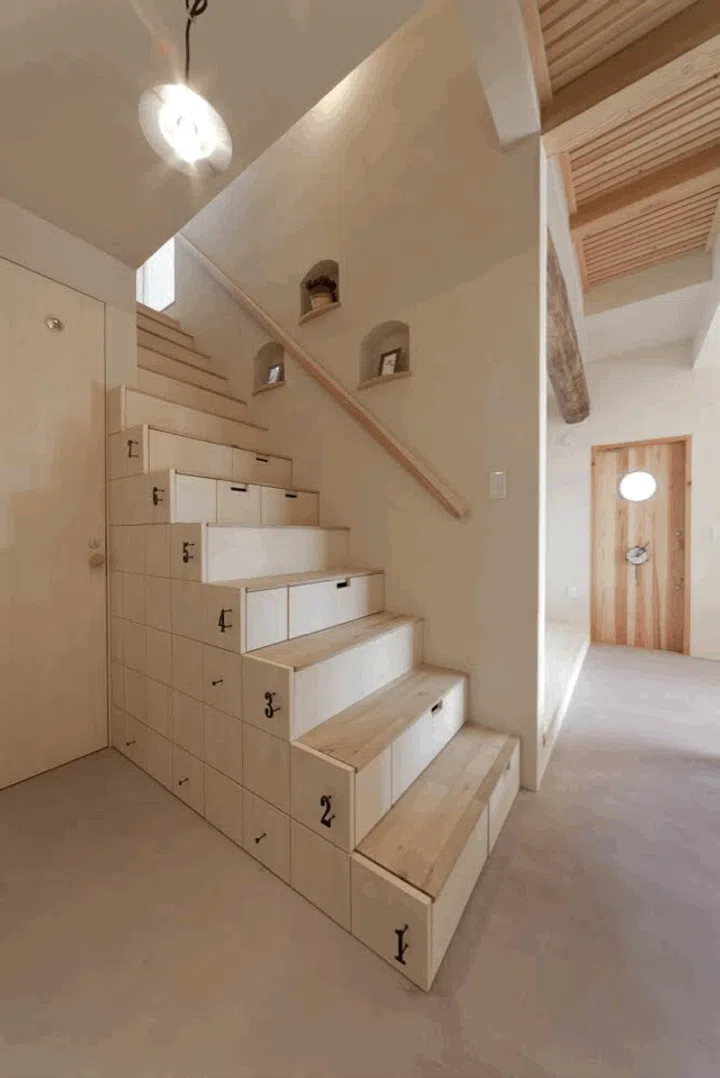 The staircase presents the biggest opportunity for storage. The triangular space beneath it is a classic example of awkward angle storage while its risers can double as pull-out drawers. And this applies not only for full-fledged stairs in multi-storey homes, but also for the fewer steps in split level homes or mezzanine platforms. This home in Japan designed by architect Kotaro Anzai of ADX takes it up a notch with its custom carpentry staircase drawers.