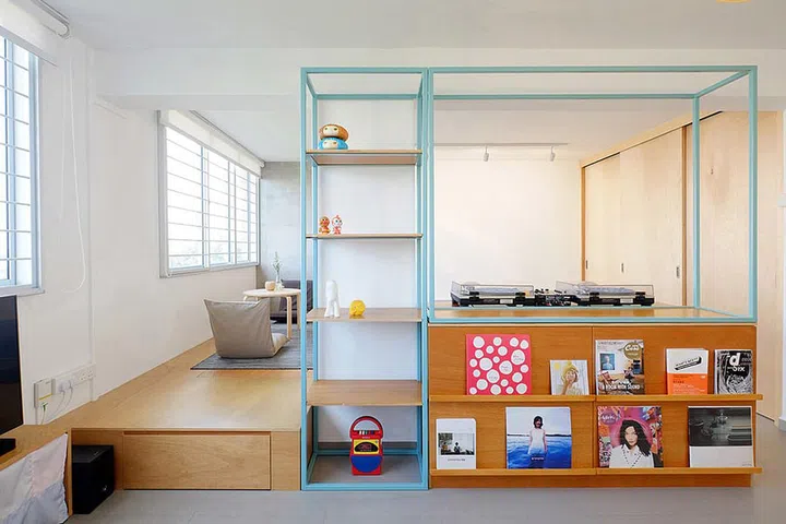 The storage space that hides in plain sight, feature wall storage serves as a storage, space divider and architectural centrepiece of the home.The Crate Apartment by Upstairs_ above places its feature wall-cum-storage as the centrepiece of the design.