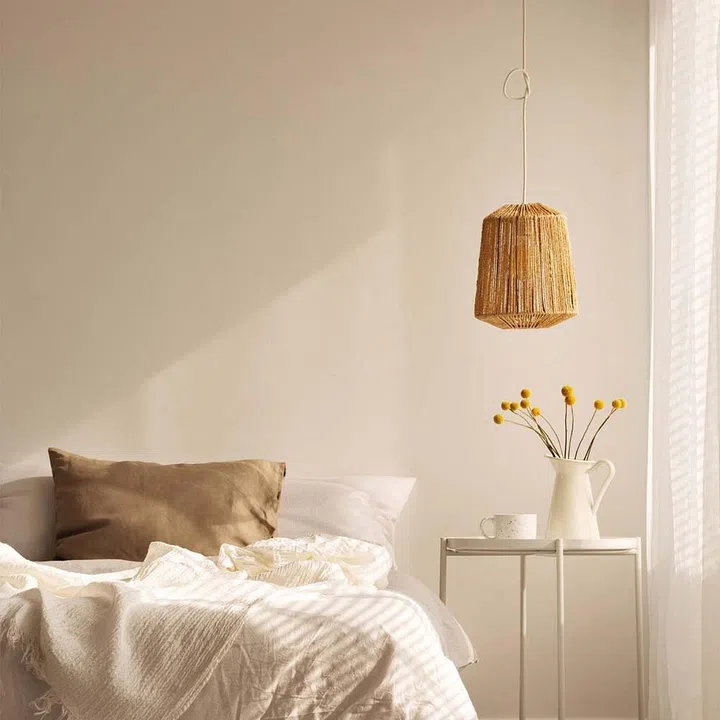 A bedroom awash in Gentle Whisper’s shades of beige.