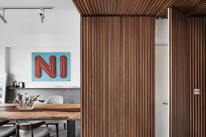 Modern panelling solutions can be rather compact and do not take up that much additional floor space. Additionally, certain designs act as neat accents for space, providing much-needed contrast for some homes. Louvred panels help to conceal their own door openings and are thus a great choice for a truly seamless look. Consider extending this design language by having the louvres wrap around the ceiling above as well.
