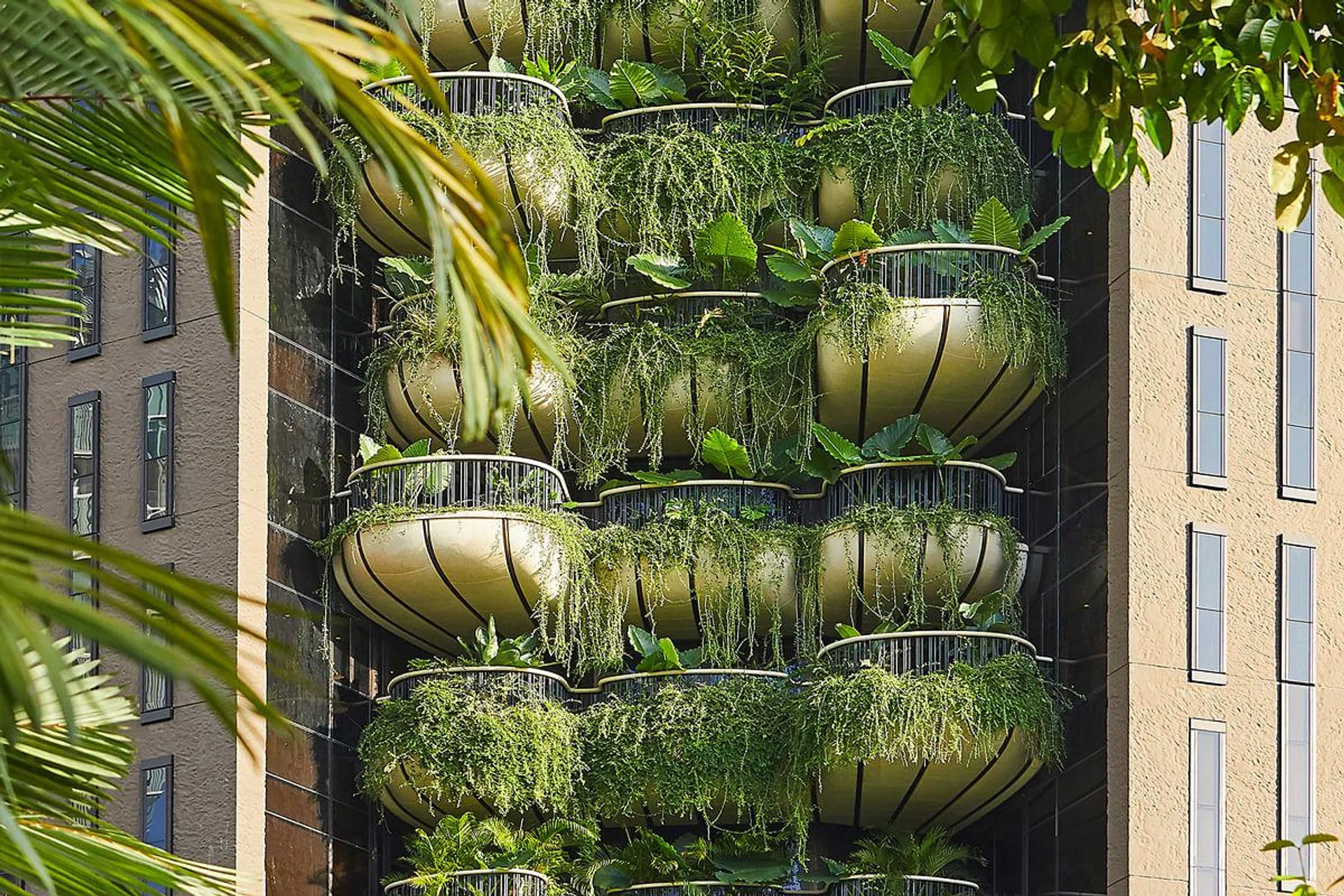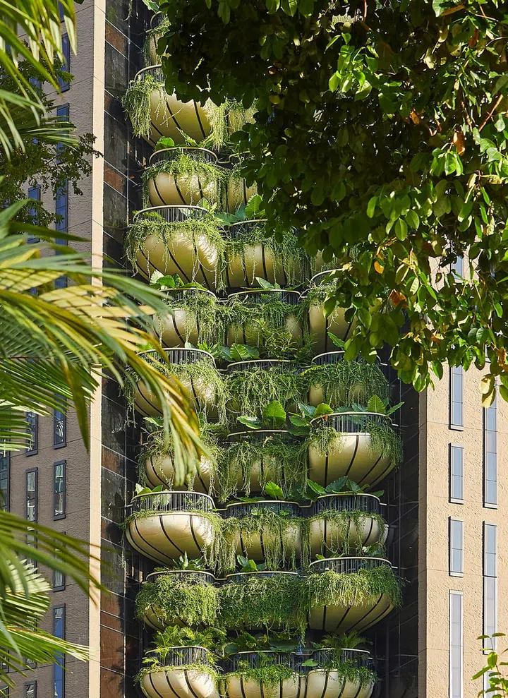 London-based firm Heatherwick Studio designed the single-tower condominium with 20 units to have thin windows at the side and shell-shaped balconies on each floor. But its most eye-catching feature is the lush greenery growing from these balconies and from a distance, the building appears to be covered with a green curtain.