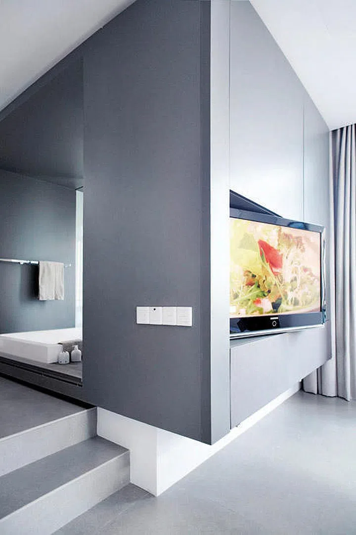 Want to enjoy the TV from both the bathroom and bedroom? Mount your TV such that it can swivel around to the side you want!