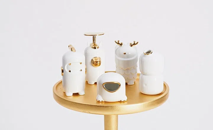 Quixia has updated the aesthetic of these artefacts to suit our contemporary taste. Her Ji Jian Wu collection comprises five feng shui artefacts made of white and gold lustre porcelain: Qi Lin (for good fortune), Jin Chan (for luck in wealth), Hu Lu (to contain negative energy), Pi Xiu (to guard wealth), and Ma (for immediacy), that would look at home in any contemporary setting.