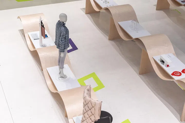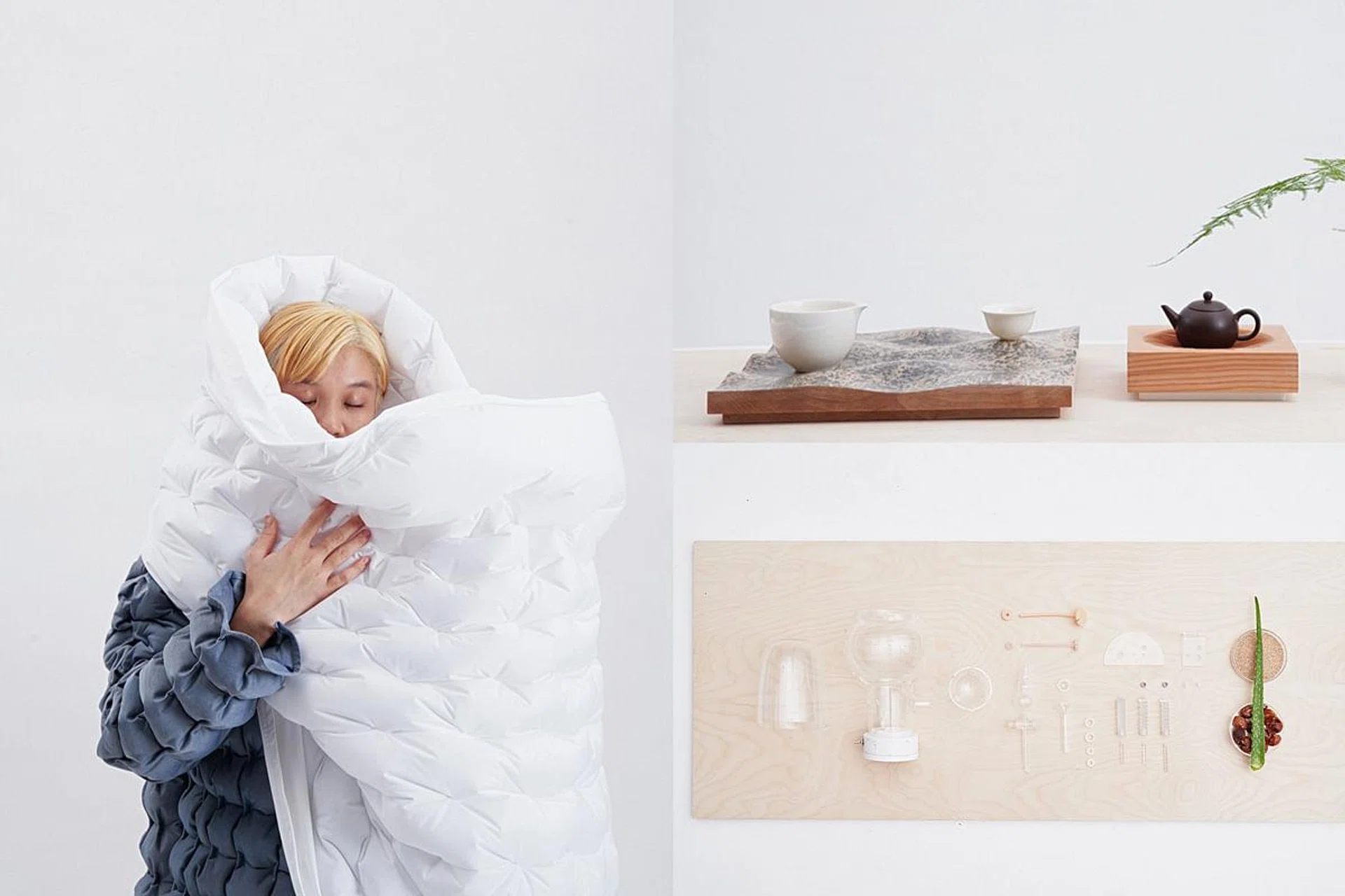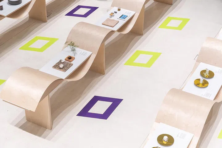 Displayed in plywood pedestals with undulating soliton waves inspired by the graphic charts tracking the Covid-19 waves, the seven projects highlight issues ranging from the ageing population and circular economy to cultural beliefs and the ritual of making.