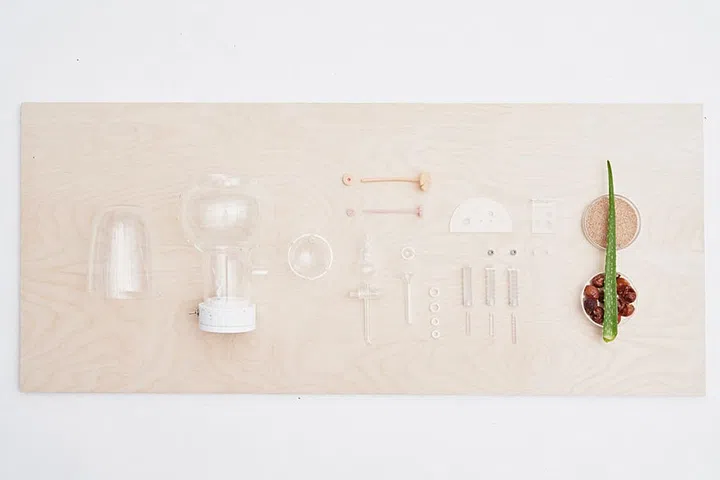It is an apparatus comprises glass parts for manually extracting saponins from soap nuts and adding desired scents and ingredients for making one's own soap. While admittedly not the most practical way to make soap, Mass Production of Happiness does offer a playful ritual that nudge us to re-examine our relationship with the product we use.