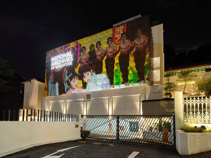 This light projection at the National Archives of Singapore features a fun collage by visual artist Mojoko, who remixes images from