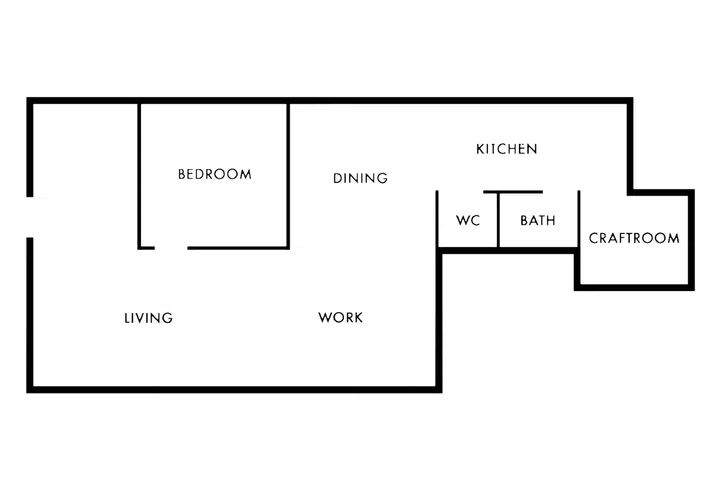The original bedrooms were transformed into an airy, open-concept space comprising the living, work, and dining areas, while a new master bedroom was created in the middle where the former living room used to be.