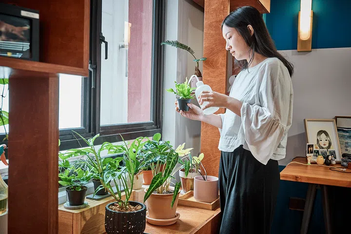 One set of shelves also doubles as a showcase for Ms Chen’s favourite plants.