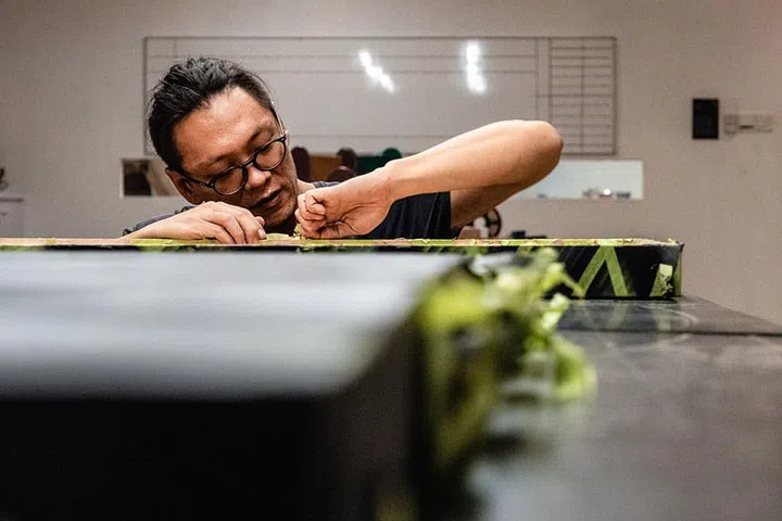 With a background in fabrication and robotics, Singapore-based, US-educated Indonesian artist Eugene Kosgoron approaches his art, which ranges from painting to sculpture and installation, with experimental methods that combine art and architecture.