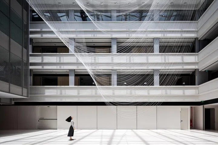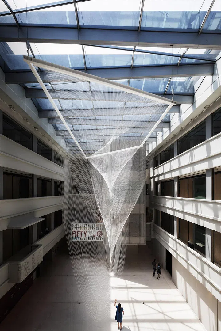 It was a graceful gossamer consisted of 480 two-millimetre-thick white nylon strings in various length painstakingly secured with drawstrings to create an illusion of twisting movement.