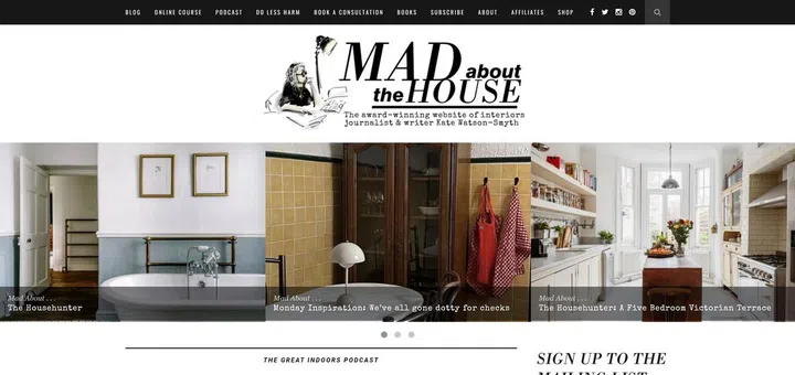 Mad About the House is a blog created by UK-based interior designer Kate Watson-Smyth. It features a wide range of inspiration, design ideas, and tips for decorating and renovating homes.