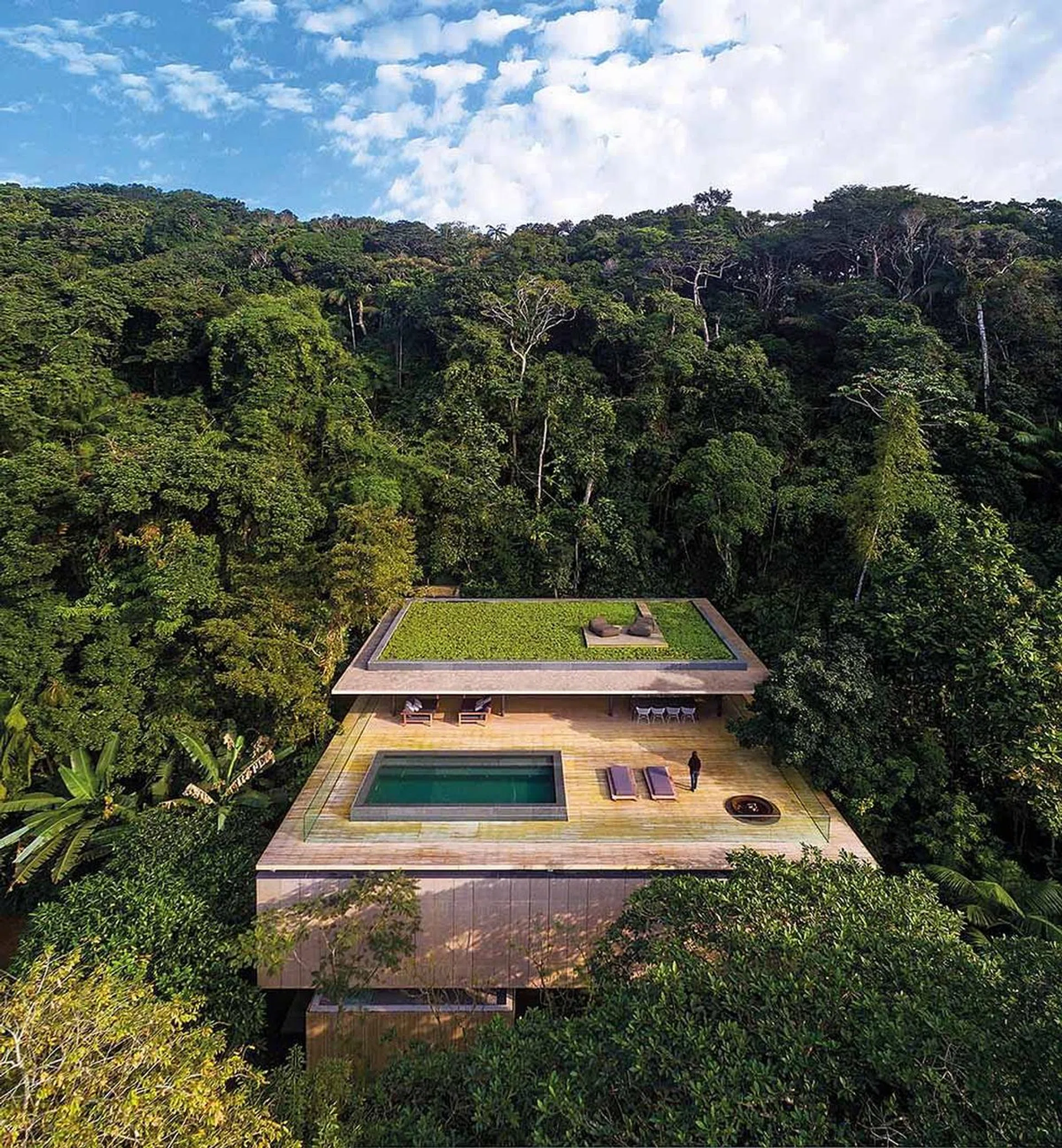 Located in the Atlantic Rain Forest in Guarujá, the Jungle House merges modern design and tropical vegetation.