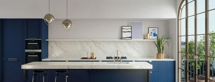 Made with more than 90 per cent quartz, Caesarstone surfaces are heat-, scratch-, stain-, mould- and mildew-resistant, making them ideal for kitchen countertop and backsplash, bathroom vanity top, feature wall, laundry counter, and furniture finishes including dining table, bedside table, and many more.