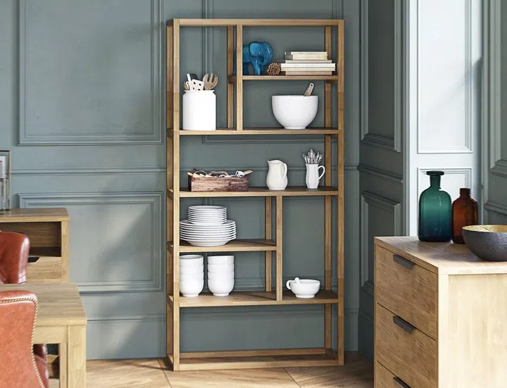 When you're short on real estate, direct your gaze upwards. Think shelves, floating cabinets or even wall pegs. An open shelving unit like the Logan Shelf can be used to hold an assortment of items while keeping your layout open, and can even act as a divider. Showcase your favourite books, sculptures and crockery or use baskets or boxes for stylish storage.