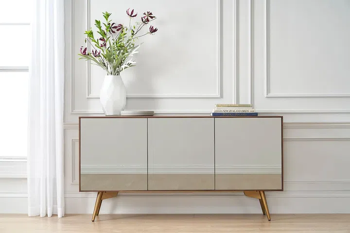 Mirrors are one of the oldest tricks in the book for small-space living - because they work. Not only do they reflect and maximise light, they add depth and visually double your room. Entryways and dining areas are great spots for mirrors and in this case, the Nero Sideboard with mirrored doors offers both substantial storage and a space-enhancing effect.