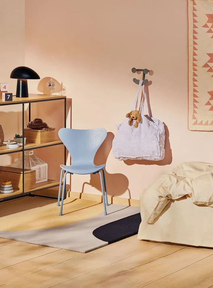 What about powder blue as a colour accent? "As an accent colour, powder blue can add a fresh touch to a neutral setting via small items like throws, cushions, and frames.” It even works fro furniture, as seen in this setting from Fritz Hansen.