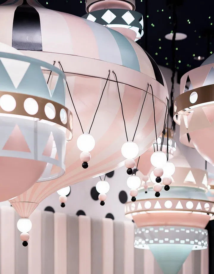 Adorned with eye-catching flower-shaped chandeliers and colourful patterns, the baby bath area aims at developing the visiting children’s aesthetic sense at a very young age.