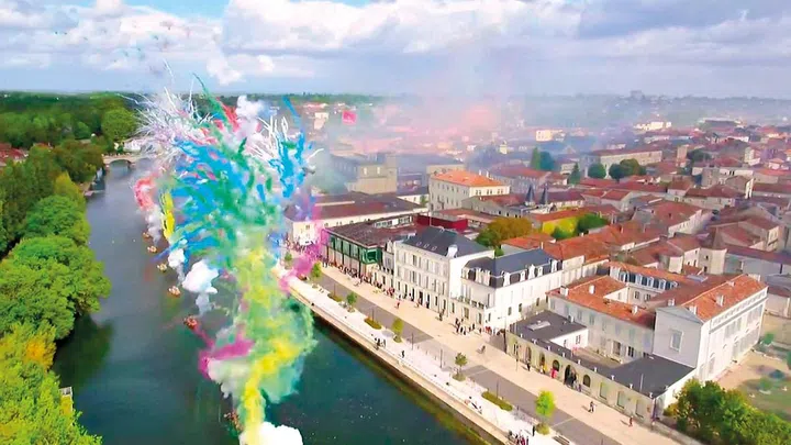Working on the water for the first time, Guo-Qiang staged his 15-minute show from the Charente River that runs through the town and had once been the channel through which its cognac travelled to the rest of the world.