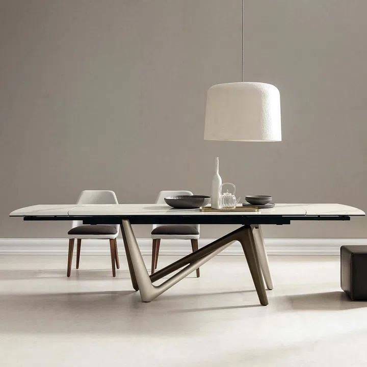 Metallics, glass, and stone are all great options for cooler-toned spaces - think dark granite, marble, steel, and slate-tinted glass. However, materials like wood or scratch-resistant laminate are both great for warmer home aesthetics - think Japandi or Scandinavian simplicity. Your choice of materials doesn’t merely encompass the tabletop - pay special heed to the legs and base of your dining table, as these can also add structural interest and aesthetic value to your chosen piece.