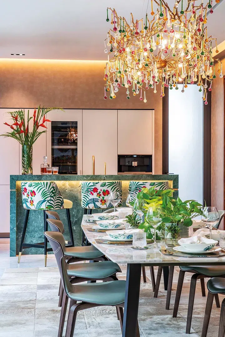 Customised furniture can offer more mileage when designed with multi-functionality, such a sofa that stretches to become a dining bench, too. Interior design by EHKA Studio.