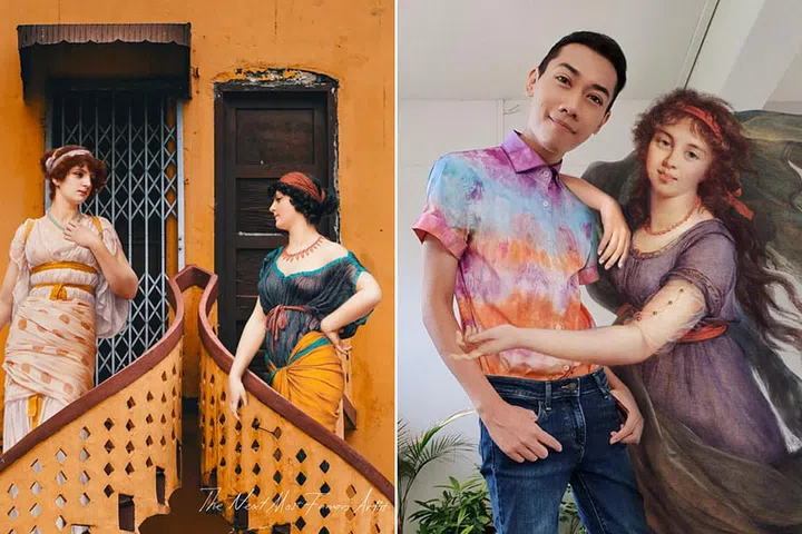 The series started when he was pursuing a master in Asian art histories at LaSalle College of the Arts, which exposed him to various artworks. He was then intrigued by and experimented with the juxtaposition of classical Western figures and Singapore’s modern setting. The creative whizz, who has garnered a sizeable following on social media and also created a series for Visit Singapore, continues to make and sell art and prints that respond to current events.