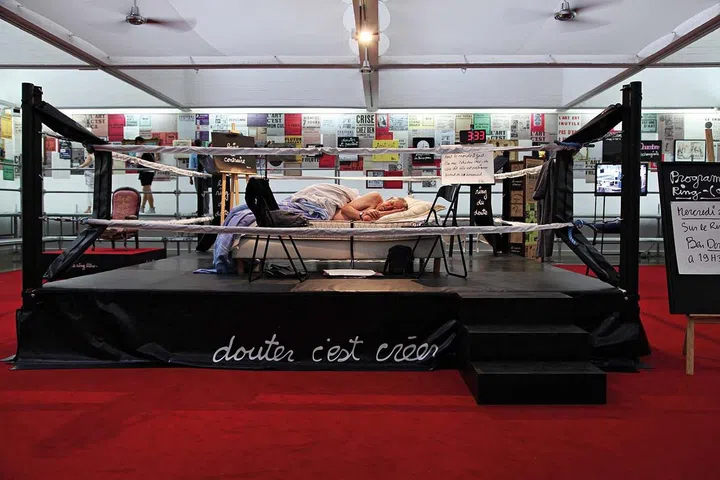 He’s a collector who accumulates the smallest and most modest objects over time to transform them into works of art. Lately, he has been working on a movie called Vous (You) that doesn’t have an actual scenario. The film is the audience and he speaks to them, instructing them to move their feet or to look at one another, or tells them he has hidden money in the room.