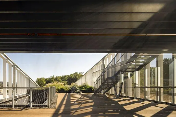 With their generous patios and green roofs, the three main wings of the complex integrate almost seamlessly into the surrounding beauty of the Tuscan landscape. Built at different heights, with plenty of open spaces and natural light streaming into the interiors, the complex eschews the conventional in favour of celebrating the connection between the indoors and outdoors.