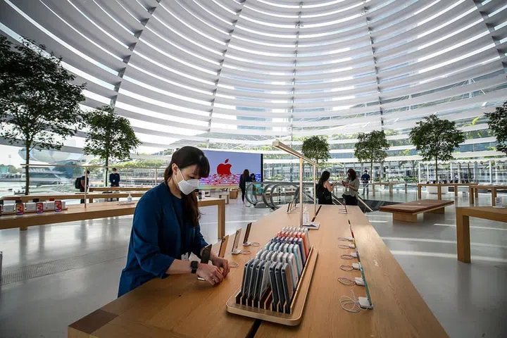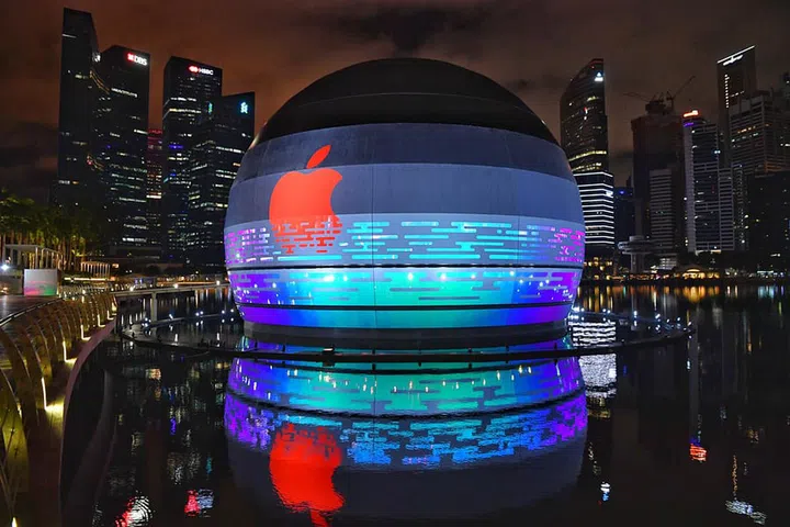 Apple unveiled its world's first floating spherical store at Marina Bay Sands on Tuesday (Sept 8) in a preview for the media before its official opening on Thursday.