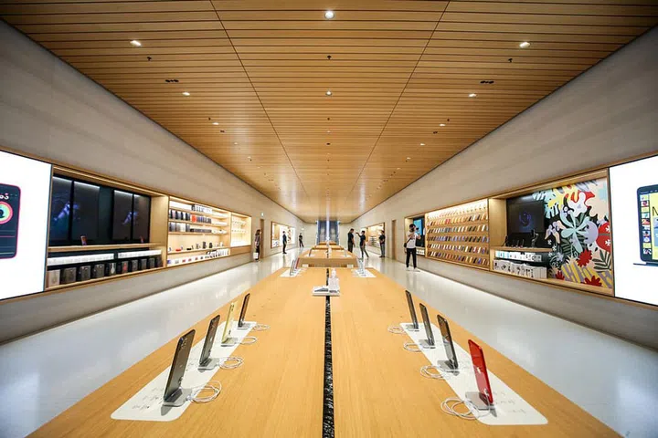 Apart from showcasing Apple products, the interior of the dome holds the Forum, an events space centred on a video wall which will serve as the stage for Apple's in-store events, featuring Singapore's artists, musicians, and creators.