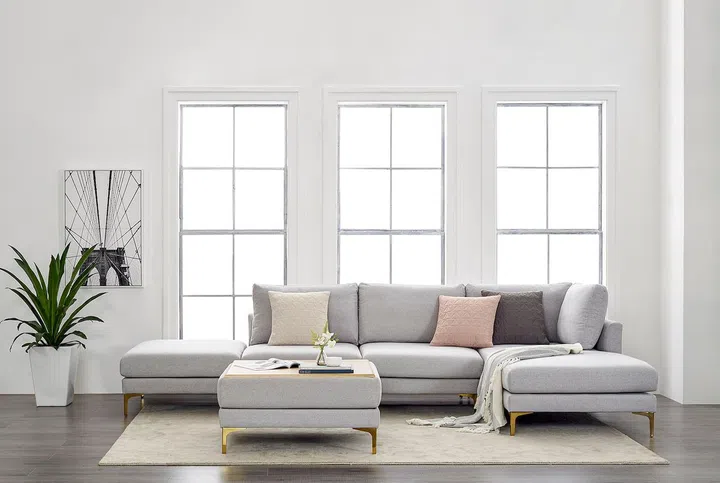 The Adams chaise sectional sofa with ottoman is a modular set that allows for flexible seating options to suit different occasions. For instance, the chaise module of the sofa can be detached to fit your layout, for when you have guests, or simply if you prefer a cosy spot to curl up on.