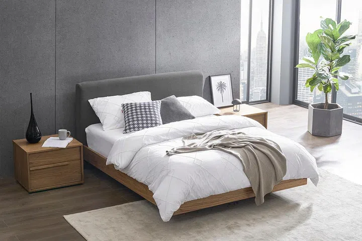 For a clean-lined bedroom, the Joseph bedroom collection gets our vote. Well-proportioned and streamlined, the bed frame's floating base lends to the impression of more floor space, while the bedside table has substantial storage to keep clutter out of sight.