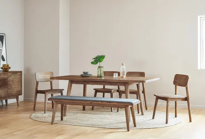 When it comes to versatility, the Seb extendable dining table crafted with sturdy acacia wood can extend from 150cm to 200cm, offering extra table top surface and seating when you have company over. Rounded corners also make it safe for when kids are around.