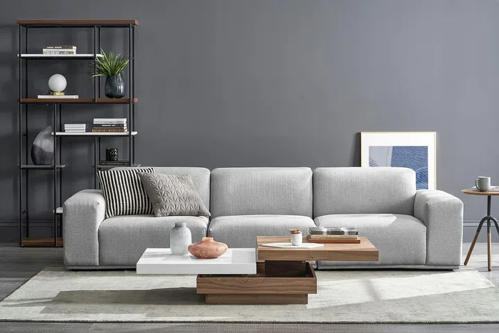 The Todd extended sofa, Andre coffee table, Zane side table and Cliff shelf.