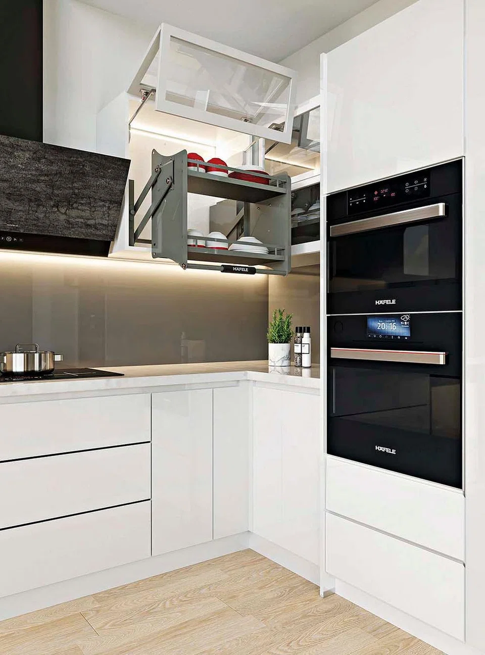 Wall-hanging systems, cabinets with pull-outs, and clever interior accessory systems can make using your kitchen much more convenient and pleasurable.