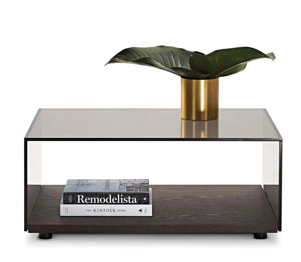 A classical design, characterised by simple geometric forms, this duallevel coffee table from King Living’s Jasper Occasional Table Range allows you to store and display coffee table books, board games, objets d’art, or even small potted succulents or snack platters under its glass tabletop.