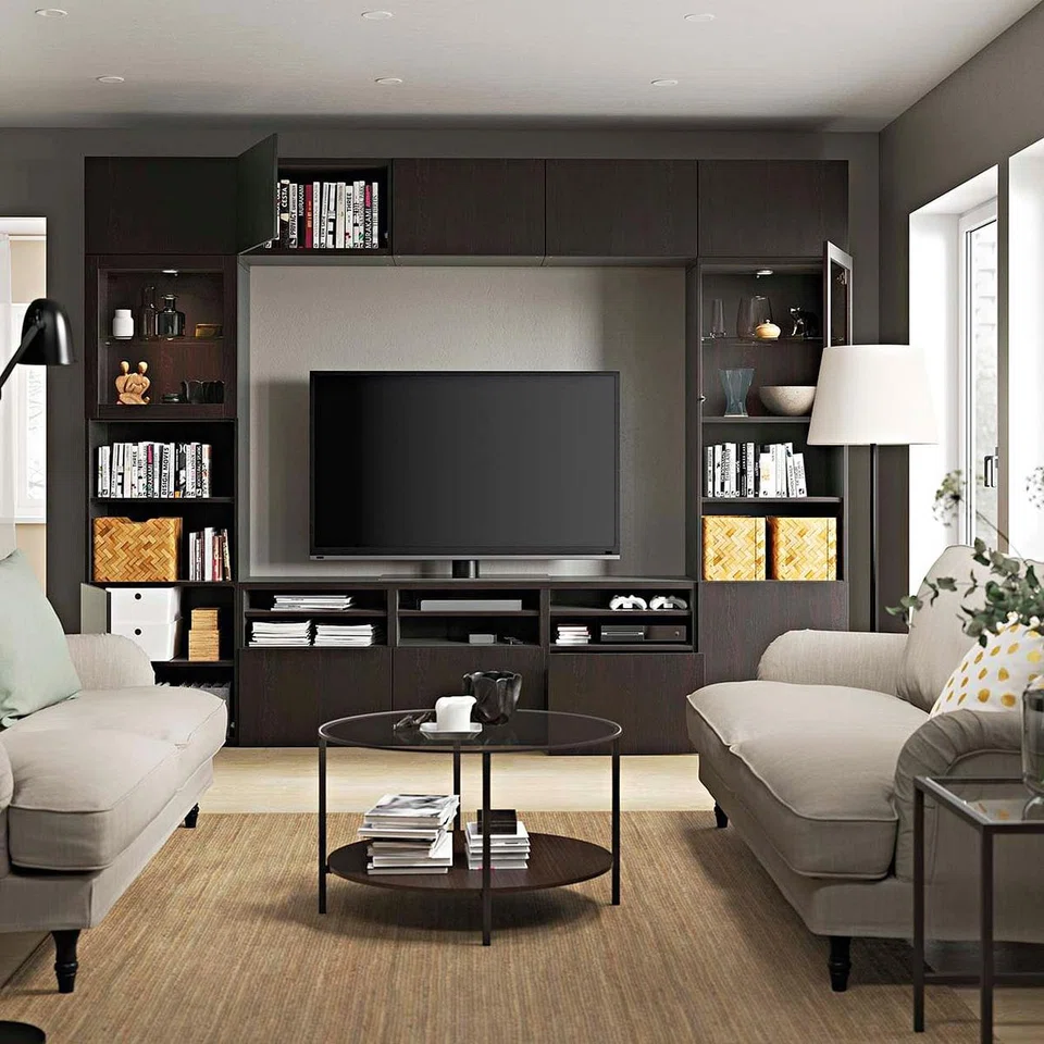 Ikea’s Besta TV storage combination, which comes in a variety of different colours and combinations is an effective way to do so.