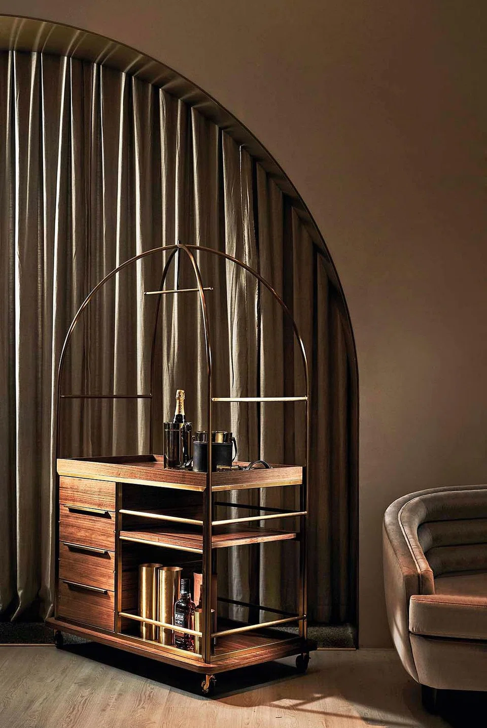 The Baronet Bar Cart is a good addition to homes with open plan living and dining areas and is a great way to serve cocktails and snacks in the living room when you’re entertaining.