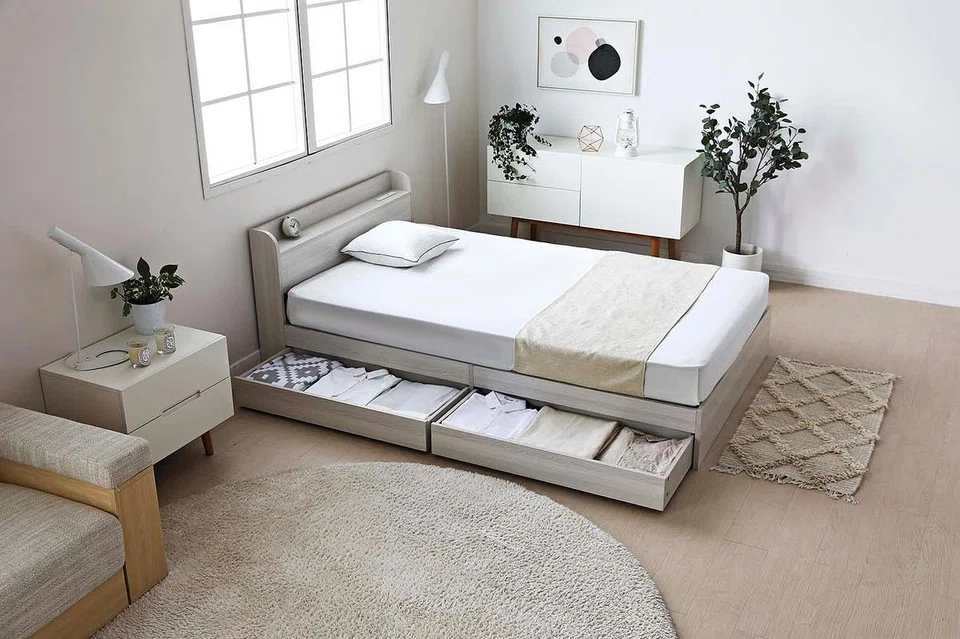 Under bed storage is an excellent solution for optimising bedroom floor space. Bed and Basics offers a variety of storage beds. The Aube Drawer Wooden Storage Bed ($399 to $499) includes two spacious and deep drawers and optional headboard storage equipped with a power outlet. The Hemnes Storage Bed Frame ($949 to $1,199) features a hydraulic gas lift mechanism that lets you lift the bed up to reveal a large storage compartment.