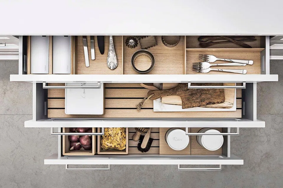 Well-considered storage planning is essential to maximise every inch of precious kitchen space. Founded in Germany in 1923, Hafele designs pull-out kitchen drawers and storage systems that can be custom-made to suit your kitchen storage needs. Their Kosmo range of smart storage products includes base cabinets and corner, wall, and tall units that you can mix and match to suit your needs.
