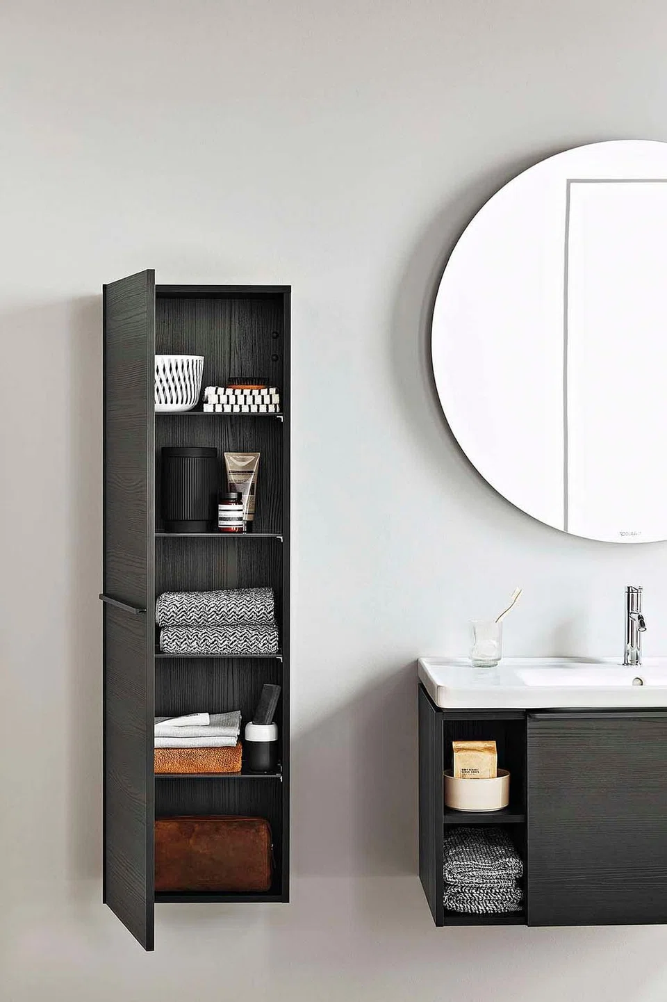 Mirror cabinets can provide ample smart storage for toiletries and medicines while discreetly blending with the rest of your bathroom. Duravit’s Brioso, XViu, and Universal mirror cabinets come with LED lights and stand out for their sleek form and finely nuanced geometry. They are perfect for modern bathroom schemes.