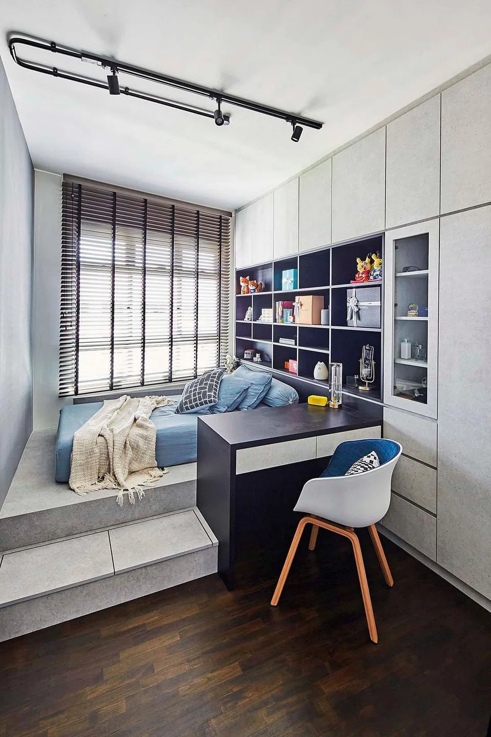 Compact and streamlined furniture with plenty of built-in storage is a smart way to make your bedroom feel more spacious.