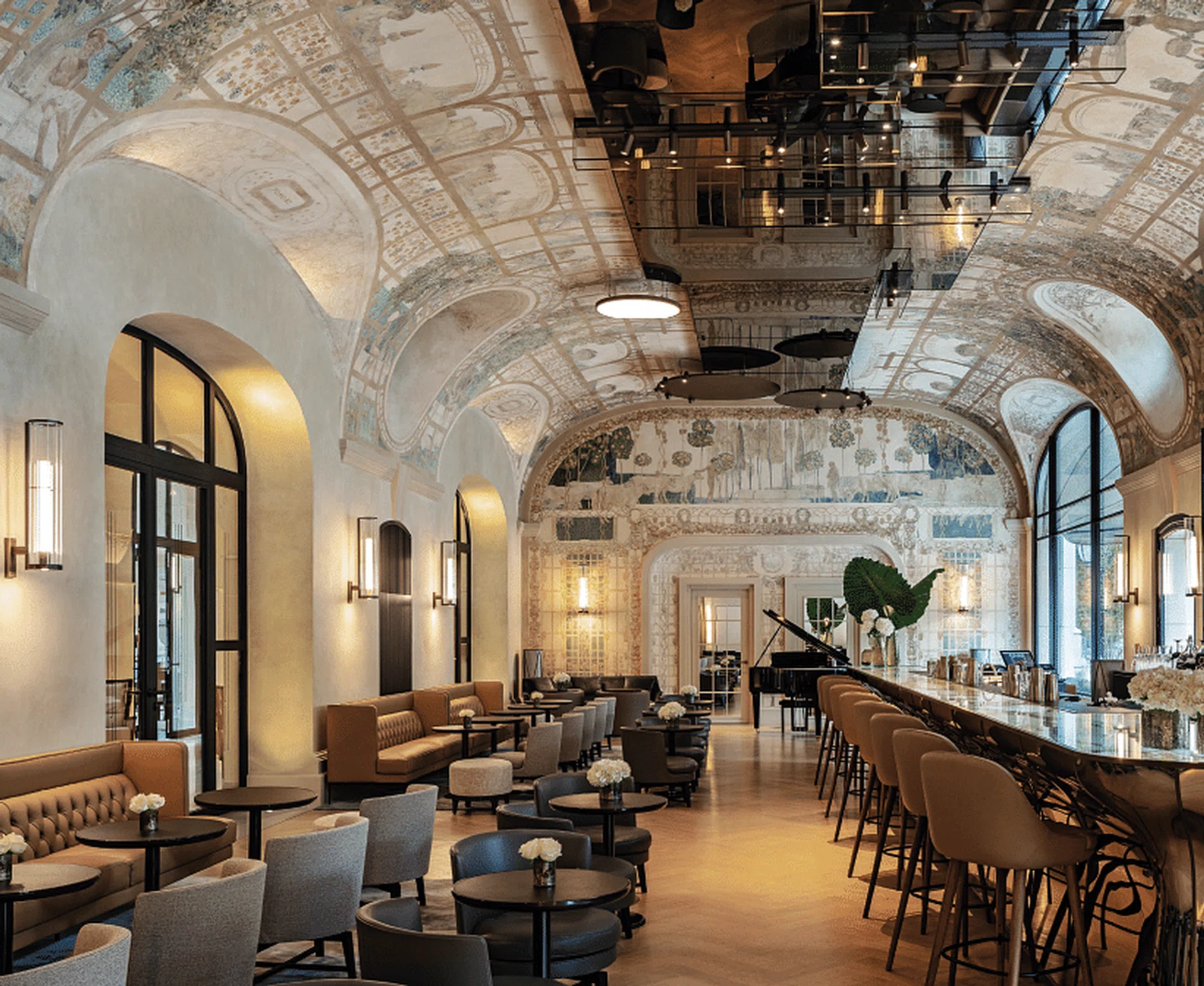 Bar Josephine features a painstakingly restored fresco painted by Art Nouveau artist Adrien Karbowsky in 1910.