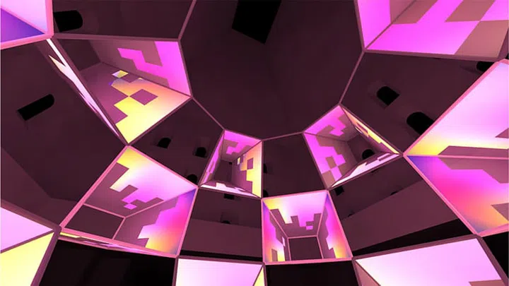 A fascinating interplay of colours that harnesses both natural and artificial light. Made up of truncated pyramids with the dynamic and translucent coloured surface, the immersive installation combines the use of light and form to trigger an emotional reaction.