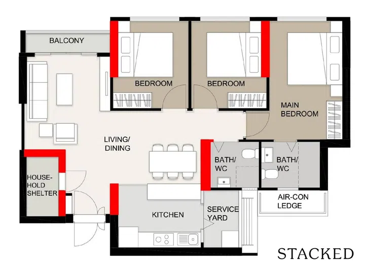 Especially with the falling birth rate trend in Singapore, families are smaller today. Some may just prefer having a bigger living area than having 3 proper bedrooms in the house.