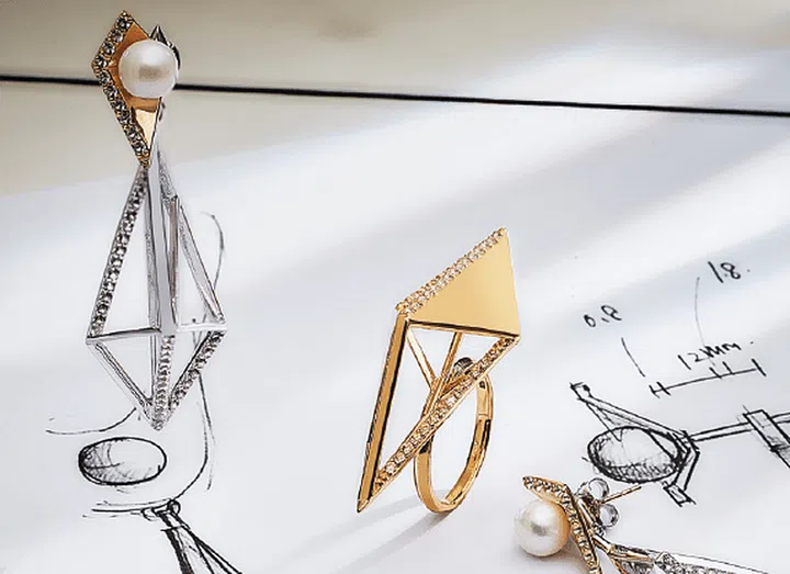 Carrie K’s Icon jewellery collection is inspired by diamond motifs of the National Theatre’s facade. Photo: Carrie K