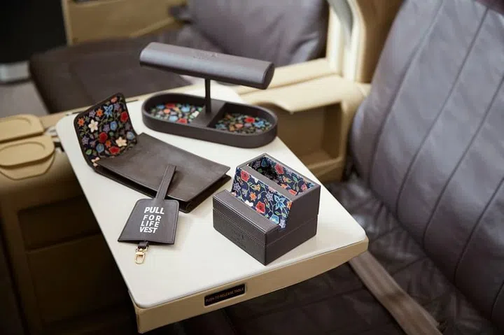 Bynd Artisan and Singapore Airlines have teamed up to bring us limited-edition pieces featuring the iconic airline's business-class leather seats and their signature batik print, now repurposed into beautiful home accessories such as a watch and valet tray. Named The Upcycling Project, this initiative reduces waste by giving new life to parts of their retired commercial aircraft.