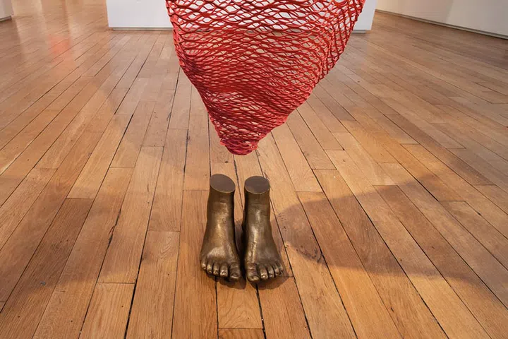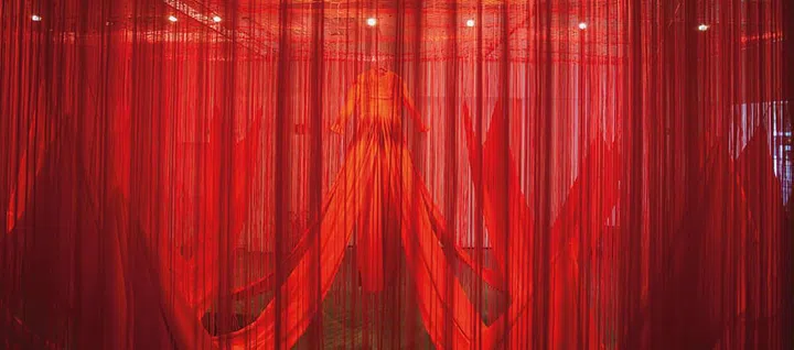 Inhabiting immense spaces with networks of string or wool interwoven in all directions, from floor to ceiling, that represent the complexity of human relationships, she builds monumental, site-specific artistic installations of architectural richness. Intended to be places of solace and contemplation, they invite visitors to wander inside and get lost.