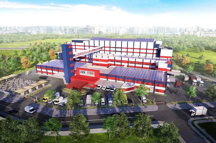 Lock+Store in Chai Chee features rooftop solar panels, recycling stations, EV charging points and an Edible Garden as part of its green efforts. ARTIST IMPRESSION: LOCK+STORE
