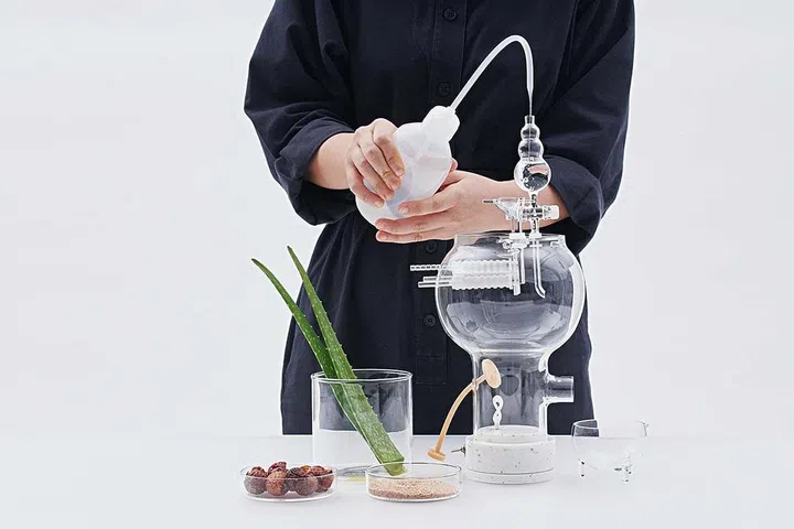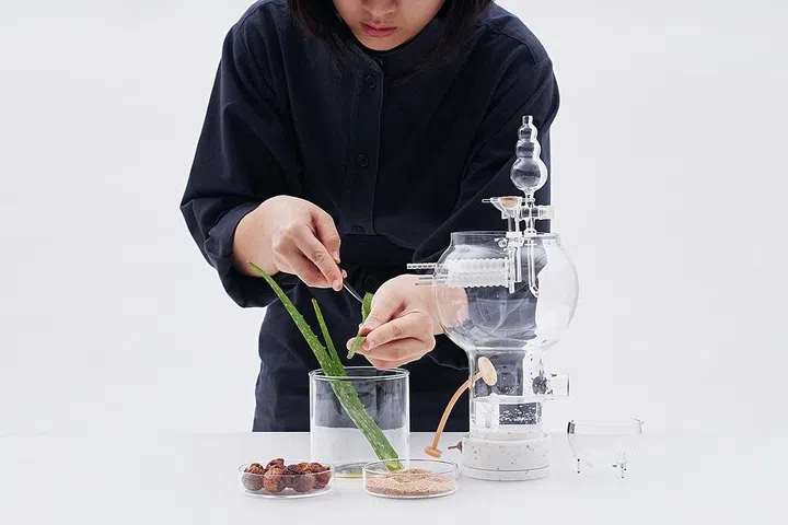 One of these concepts was Mass Production of Happiness, a curious glass apparatus multidisciplinary designer Yingxuan Teo invented to produce soap at home.